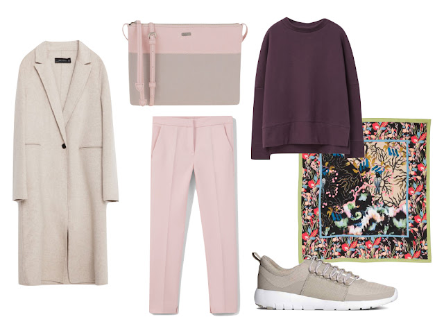 A modos que para hoje sugiro um look quente - eu bem que tenho looks com sandálias e saias giras, mas não dá... - e confortável, como tem sido hábito, e com uma conjugação de cores mais leves, que foge ao preto e cinza de inverno pesadão. E também porque eu adoro o rosa velho e o beringela juntos e foi a desculpa perfeita.