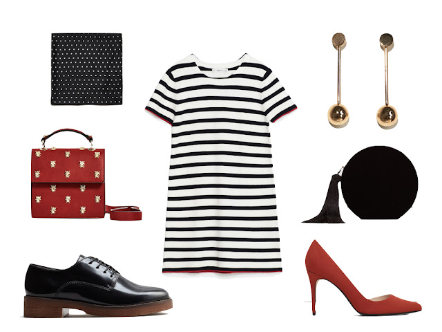 Vestido 29,95€, Lenço 7,95€, Carteira vermelha 25,95€ e Brincos 15,95€ | Zara