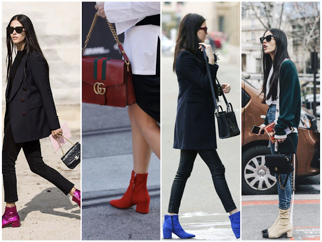 E gosto muito de botins pretos, é um facto. Mas não podemos negar esta vaga de botins coloridos e cheios de pinta que começaram a invadir as lojas na coleção passada e que vão continuar por estes meses fora. Aqui mostro-vos alguns modelos em saldos que eu adoro de paixão - cada um deles - e quatro formas de os usar.