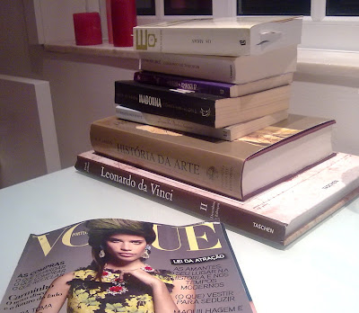Como podem ver (a mesma foto, mais uma vez!) o último é exatamente esse mesmo livro de imagens dos esboços do Leonardo Da Vinci.