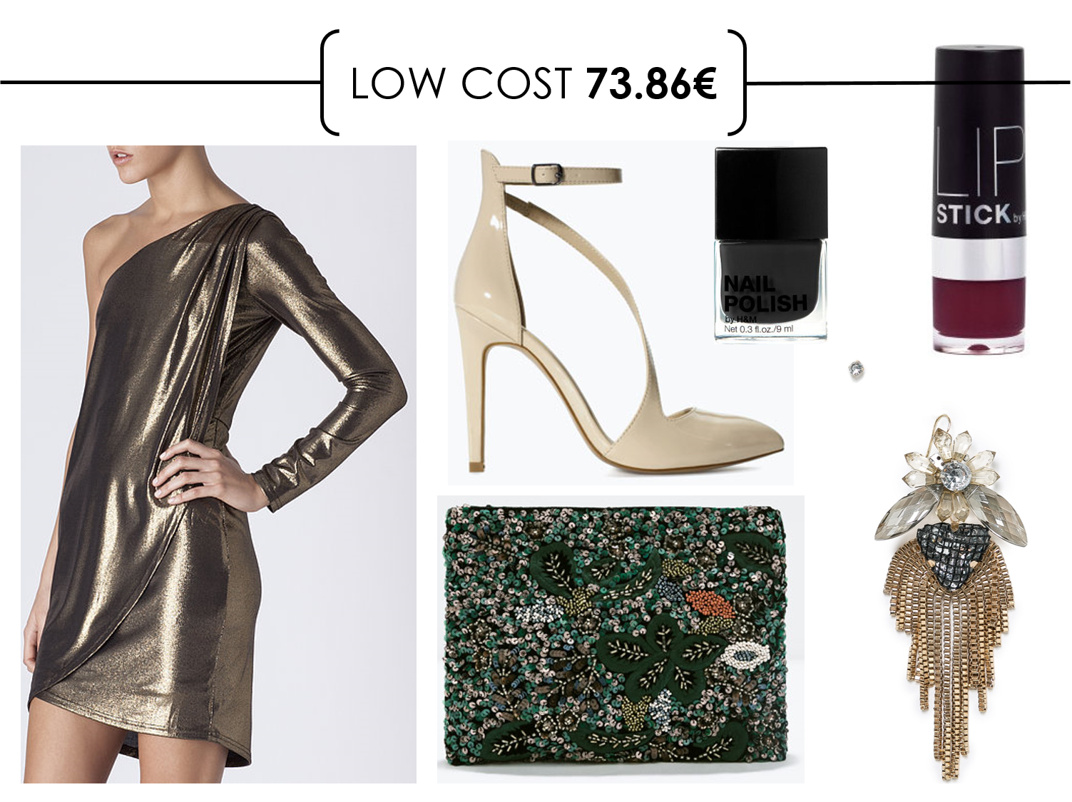 Um vestido dourado, low cost e diferente dos cortes a que estamos habituadas a ver. E - surpresa! - não tem lantejoulas! Eu acho que não sou nada fã deste tecido (mas ainda não vi pessoalmente), no entanto, para quem procura um vestido apenas para a Passagem de Ano e não quer gastar muito dinheiro, esta é uma boa opção! Juntem um bocado de atitude com um brinco grande e outro pequenino, uns sapatos neutros e básicos e uma clutch cheia de pormenores lindos de morrer (e a cor, senhores?). Eu gosto de tudo!