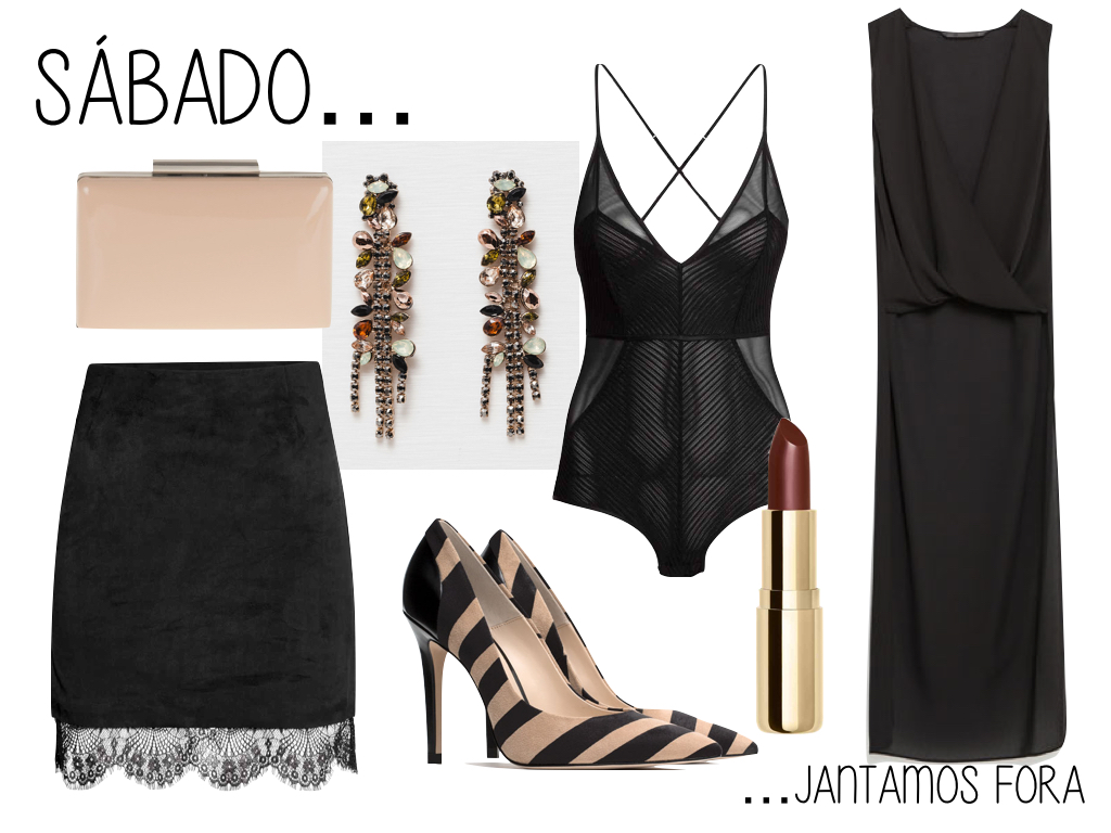 Mas se querem mesmo ir jantar fora a um sítio super elegante (e quem sabe, terminar a noite a dançar ou em casa com o vosso homem - if you know what I mean) então este é O look. Sofisticado, elegante e extremamente sexy sem ser ordinário. Uma saia com pormenores em renda, uma blusa mais comprida atrás, um body que espreita e dá o "ar de sua graça". Uns sapatos e clutch elegantes e uns brincos que são uma jóia.