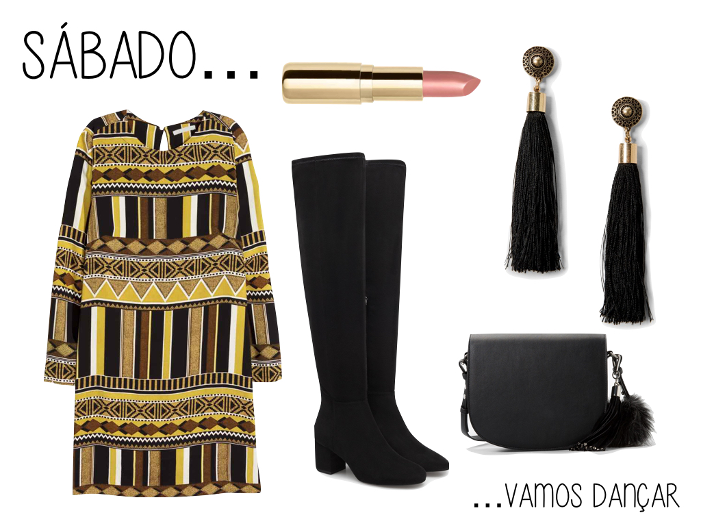 Se são como eu e não passam muito tempo sem dar um passinho de dança (até de manhã), então este look é o ideal. O vestido tem toda a atenção, por isso não precisam de muito mais. Botas confortáveis, carteira suficientemente grande para caber tudo o que precisam. Sexy, confortável e divertido.