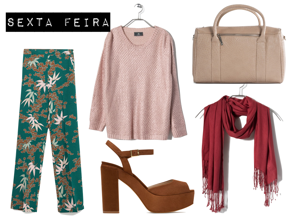 Calças e Sandálias Zara | Camisola, Mala e Echarpe Mo
