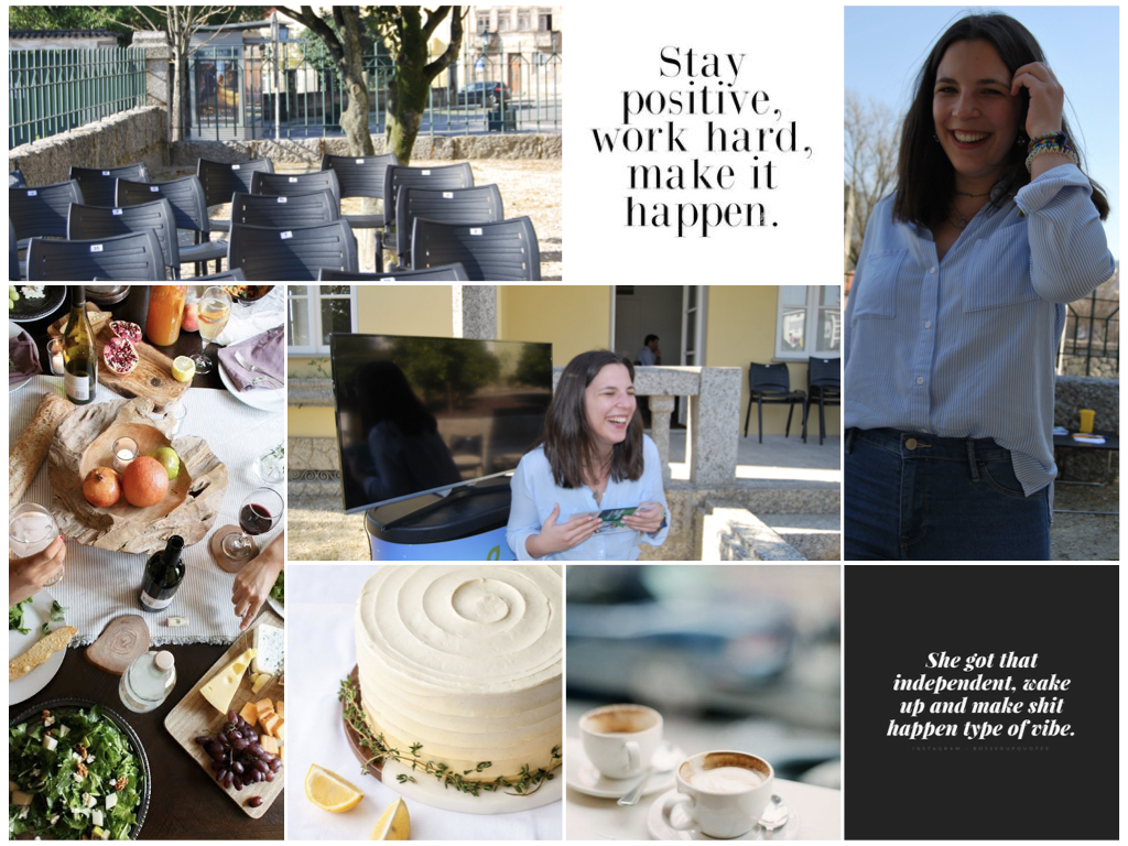 Depois também acho que todos acham que é tudo rosas. Que a minha vida é perfeita, que é muito fácil, que tudo o que me acontece é ótimo e que tudo corre bem. Tenho dias maus, como toda a gente. Já tive problemas no trabalho, já me chateei com colegas, já levei na cabeça, já errei, já falei demais, já me arrependi de algumas coisas, também já tive tanto medo de falhar que quando chegava à cama não conseguia dormir. Também tenho dias em que estou doente e vou trabalhar e tenho que pôr o sorriso de todos os dias, também já me apeteceu faltar para ficar a descansar mas trabalhei como o costume. Já me mandaram fazer coisas que não têm que ver com o meu trabalho e também já fiz coisas que não gostei de fazer. Mas fiz. E isto ainda não é nada comparado com o que ainda vem por aí. Aqui a questão é que quando me perguntam "Então, como é que está a correr o teu trabalho? Gostas do que fazes?" eu rasgo um sorriso, ponho um brilho nos olhos e digo que "Siiim, adoro!" e aponto todos os aspetos positivos: as pessoas, o trabalho, os projetos, o respeito, as oportunidades, o edifício, a localização, o relacionamento entre todos... Bom, foco no que eu dou importância e eu tenho a mania de só dar importância às coisas boas, positivas e bonitas. Nem me lembro das más. Não vejo qual é o propósito de me estar a queixar a quem me pergunta como é que as coisas me estão a correr. Também não sou de me queixar. E por isso as pessoas acham que é tudo rosas e eu vivo no País das Maravilhas e todos os dias salto de nuvem em nuvem e ando montada de unicórnio de crina em arco-íris pelo Centro Histórico.