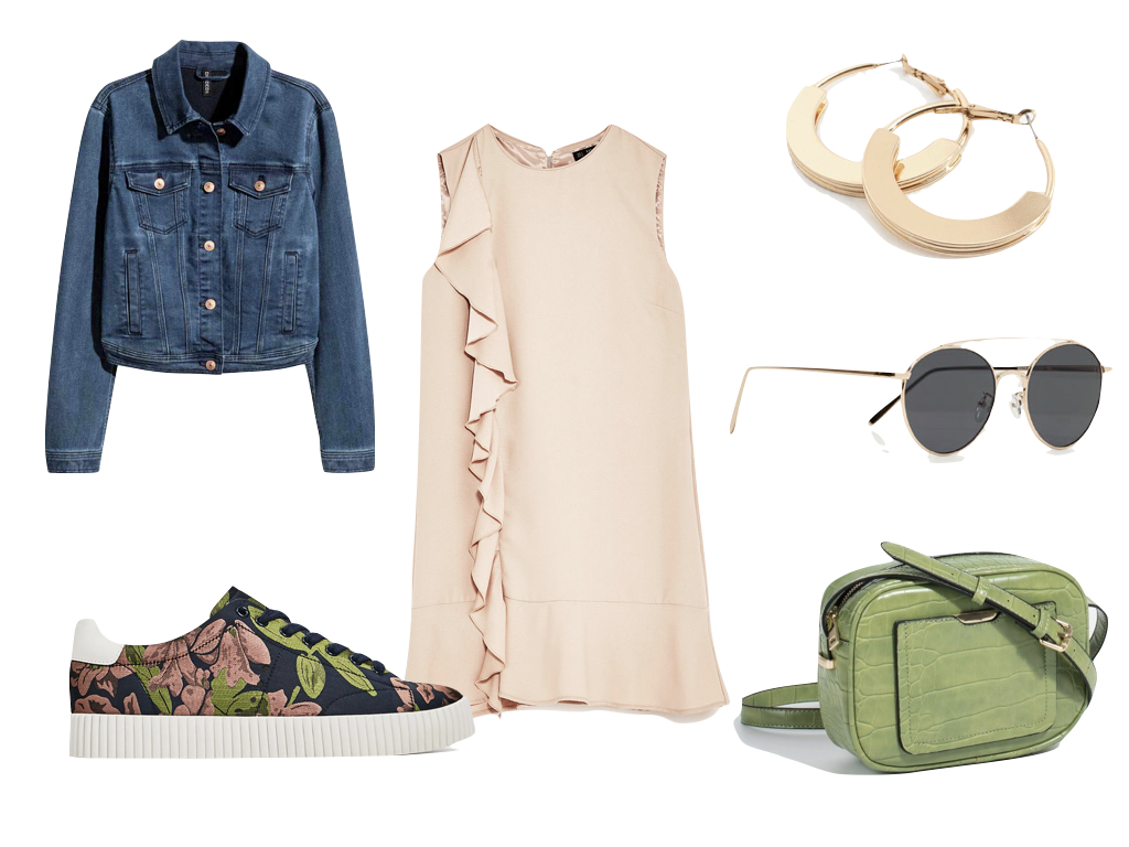 Vestido 29,95€ e Óculos de Sol 15,95€ Zara | Jaqueta 29,99€ H&M | Argolas 7,99€ Mango | Carteira 17,99€ Parfois