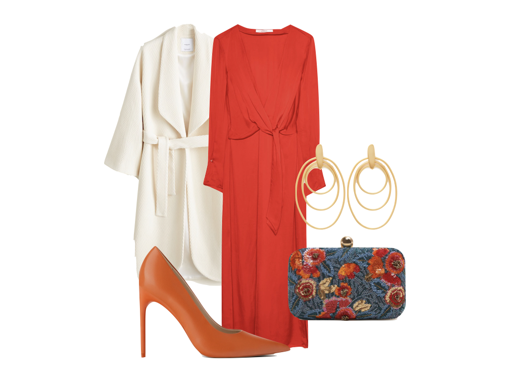 O vestido foi amor à primeira vista. Adoro o corte, o modelo e a cor. Decidi conjugá-lo de forma mais "certinha" e ideal, por exemplo, para ser usada num casamento. Mas achavam que ia ser só um basicozinho? Nem pensar! Obviamente que chamei logo o laranja para se juntar à festa e acrescentei esta clutch maravilhosa.